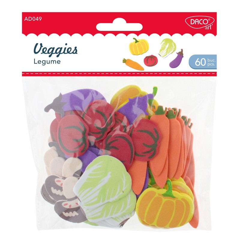 Acesorii craft - diverse legume (dovlecei, ciuperci, morcovi, rosii, vinete, varza) de spuma EVA, diferite culori. Pentru diferite proiecte de lucru manual.