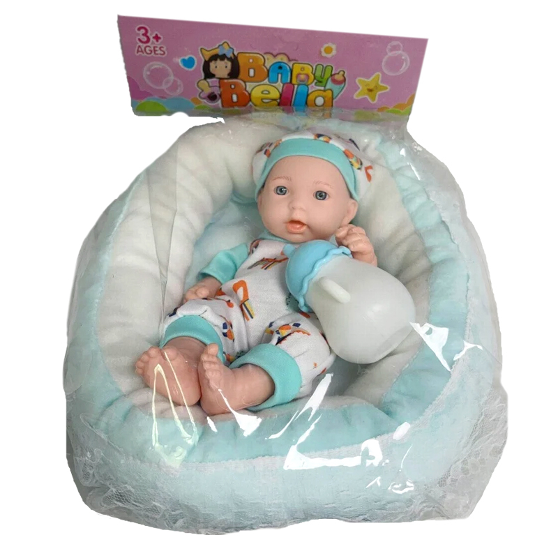 Bebeluș adorabil pe pernuță moale, perfect pentru joaca de rol. Materiale sigure, design realist și prieten ideal pentru cei mici!